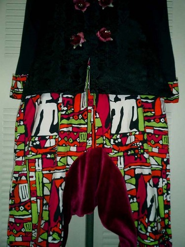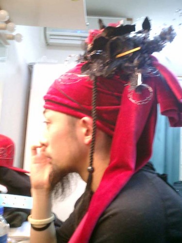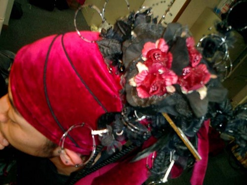 トレードマークである頭の巻物に胸元と同じミニバラ+かんざしetc…デコレーション。オリエンタルな空気をかもしだしている。