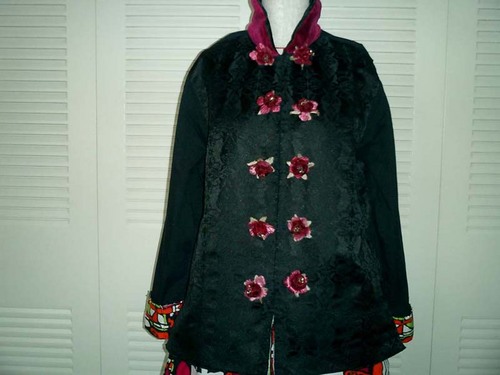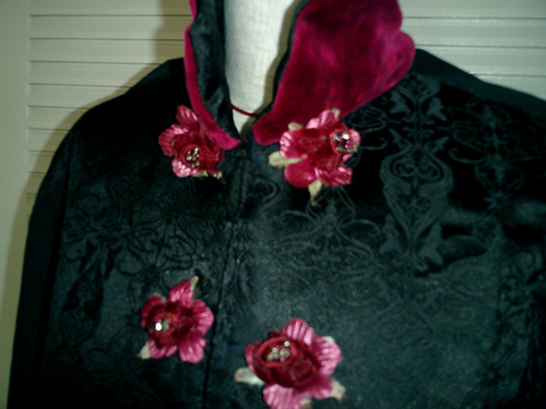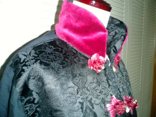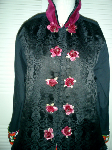 本人私物のチャイナシャツをミニバラコサージュやサテン、NE時柄でアレンジ。