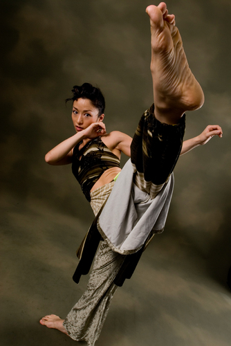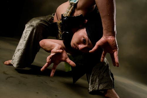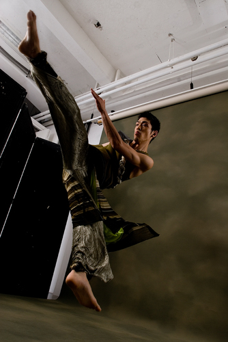 メンバーそれぞれのイメージする自分像をコトバとデザイン画でもらい、さらにUMU的カポエイラのイメージ=闘う=防具のイメージをスパイスとして加えたコラボ作品。彼らの激しい動きに耐えられる機能性を存分に考慮し、よりシャープに見える素材で完成させた。重ねてチラ見させてる蛍光黄色のシルクシフォンがまとめすぎないバランスをとっている。