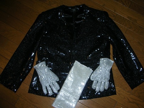 まったくおそろいで2名分のオーダーでした。カーディガンジャケット+グローブ+レッグウォーマー。 実際に着用した写真はおいおい。いわゆるマイケルのあのシルエットがでたかしら。。。