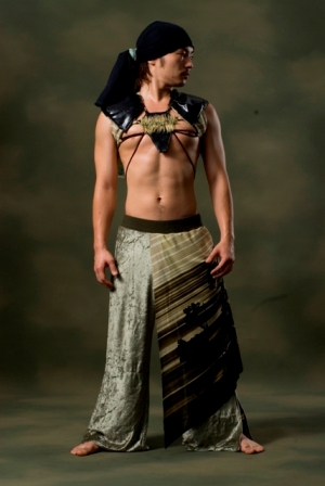 YOKO JUN TOSHI HIROKI OSAMI 5名のそれぞれとのコミュニケーションでデザインを決めていきました。同じ素材で形違い、合皮を立体的な防具のイメージにしてみたり、スカート内側からのぞく蛍光黄色の布など、アグレッシブな彼らのパフォーマンスを引き立てる仕上がりになりました。