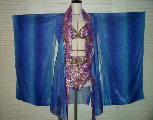 たまたま購入した端切れで高校生のときの和裁の記憶をたどって作ったもの。照明の透け具合がとてもきれい。和服すぎないオリエンタル雰囲気に。外人さんが多く集まるパーティーでよく着てます。めちゃめちゃうけます。