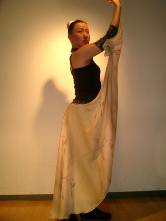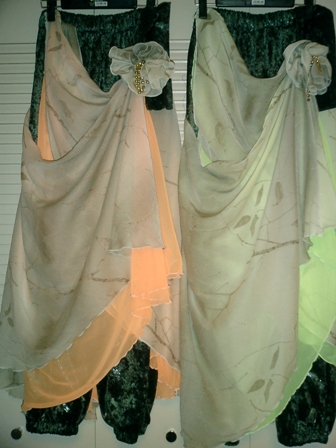 ハウスダンサーの二人。踊りやすいパンツと2WAYの着方が可能なドレスを1体化させたデザイン。 内側の蛍光シフォンがSHOWでも栄えてました。