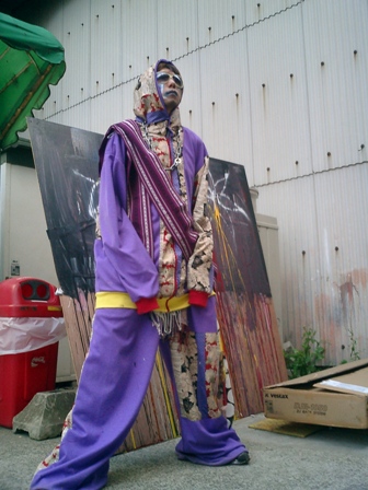 アーティスト「雅~MIYAVI」(ユニバーサルJ)のPV衣装製作 /2007.6 UMU凝レに参加してくれたペイントアーティスト「YORKE.」は「雅」のライブメンバー。 そんなご縁で衣装を製作することに。UMUのmikkoが全面的に担当。メンバー6名分を約2日で仕上げた。もちろん寝ずに><。。。
