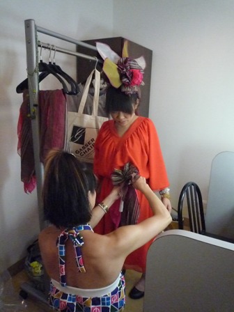 kikuちゃんのインスピレーション「朱色で」ということで、それに合わせてDANCERの衣装も。 kikuちゃんのhair アクセサリーに共布を使い「チーム感」をだしちゃいました。 DANCER衣装は「自分の衣装は自分で作ってみるかい?」ってことで UMUに泊まり込み手伝ってくれました*^^*